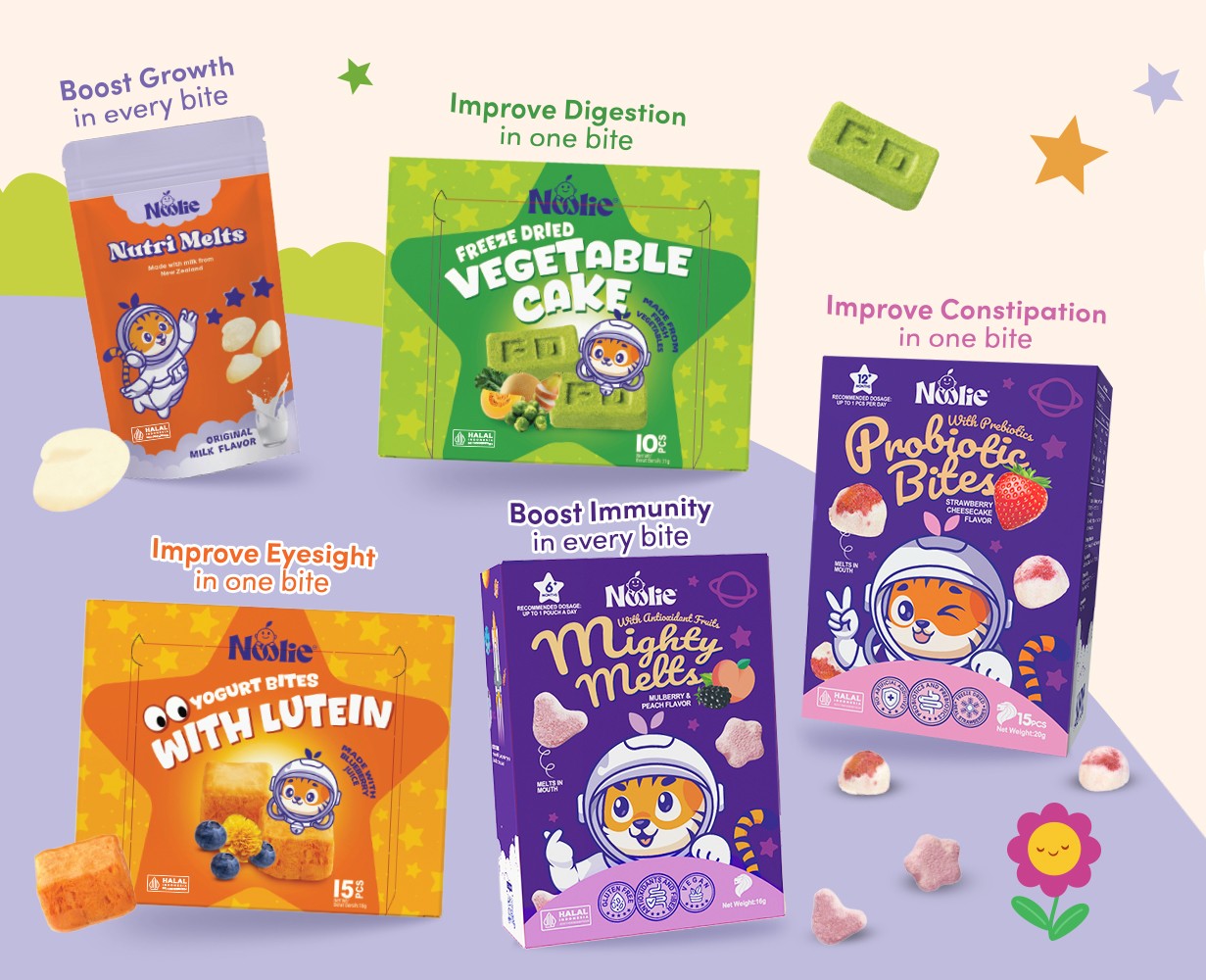 Noolie is dedicated to empowering children throughout Southeast Asia through nutrient-rich treats. We are addressing the prevalent issues of stunting and vitamin deficiencies, especially in children under five. Our specially formulated treats provide essential nutrients for healthy development so that parents can more easily nurture a brighter future for their children.
